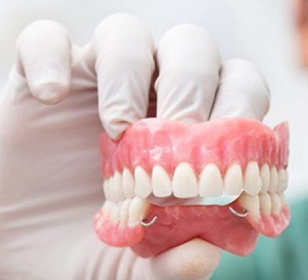 Removable dentures, better known as false teeth, are prosthetic teeth that give the appearance that the patient still has a full set of teeth. Dentures also help patients missing most of their teeth to chew food and speak clearly. However, they may not bite as effectively as the patient's natural teeth.